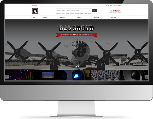 '음향/영상기기 시공전문' 이라는 슬로건에 맞게 시공현장 전경이 나오도록 하고 바로 밑에
