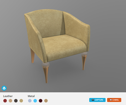 가상의 의자에 마감재를 선택해서 입혀보는 시뮬레이션 기능을 제공합니다.