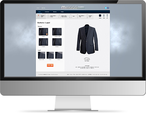 고객이 직접 정장타입과, 버튼, 호주머니등의 정장을