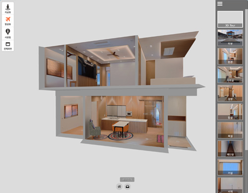 3D 투어맵 내부의 핫스팟을 누르면 파노라마 VR로 전환되어