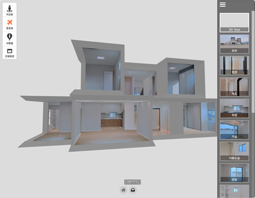 3D 투어맵 내부의 핫스팟을 누르면 파노라마 VR로 전환되어