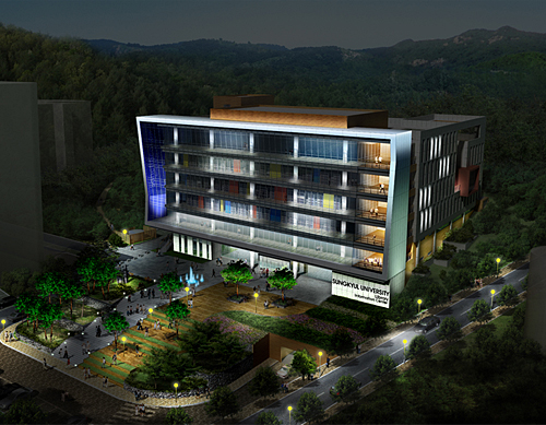 건물의 외곽을 중점적으로 조명하여 건축물의 이미지를 부각시키고 학교의 상승적인 이미지를 표현하였습니다.